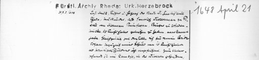 | 1648-04-21 | Archiv: Rheda, Fürstliches Archiv Benutzungsort: LWL-Archivamt für Westfalen Bestand: Herzebrock, Urkunden | Regest | |